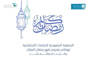 لـ admin | 19/02/2026 | أخبار الجمعية | 0 تعليقات تهنئكم الجمعية السعودية للدراسات الاجتماعية بمناسبة حلول شهر رمضان، سائلين الله عزّ وجل أن يعيننا وإياكم على صيامه وقيامه، تقبل الله منا ومنكم صالح الأعمال.. admin اترك تعليقاً إلغاء الردلن يتم نشر عنوان بريدك الإلكتروني. الحقول الإلزامية مشار إليها بـ *التعليق * الاسم * البريد الإلكتروني * الموقع الإلكتروني احفظ اسمي، بريدي الإلكتروني، والموقع الإلكتروني في هذا المتصفح لاستخدامها المرة المقبلة في تعليقي.